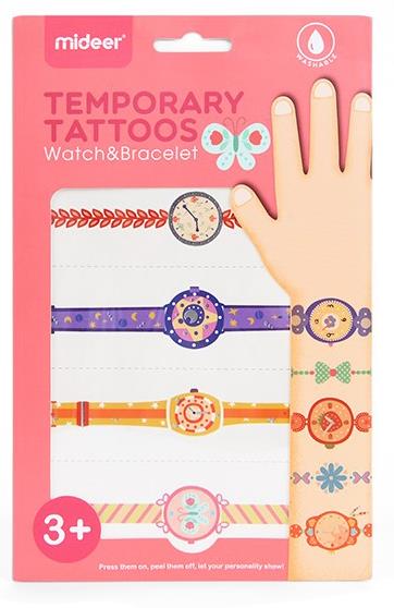 Temporary Tattoos - Watch & Bracelet, 2 themes available, comes in pleasing colors and realistic patterns, providing a fantastic experience. How to play: Cut out the design along the dotted lines; Remove the clear film; Place temporary tattoo face down on your skin; Wet the surface of the tattoo thoroughly; Gently peal the paper away and enjoy it.