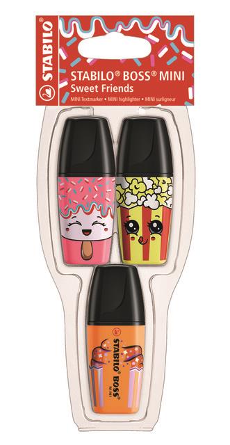 SURLIGNEURS STABILO BOSS MINI SWEET FRIENDS, POCHETTE DE 3 PCS (ROSE - JAUNE - ORANGE)