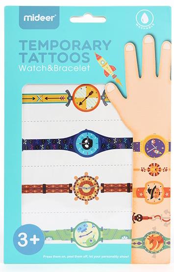 Tatouages temporaires - Montre & Bracelet, 2 thèmes disponibles, des couleurs agréables et des motifs réalistes, pour une expérience fantastique. Comment utiliser ce produit : Découpez le motif le long des lignes pointillées ; Retirez le film transparent ; Placez le tatouage temporaire face vers le bas sur votre peau ; Mouillez bien la surface du tatouage ; Décollez doucement le papier et profitez-en.