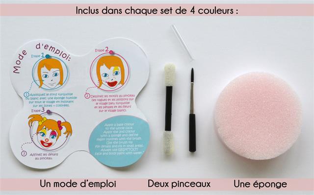 GRIM'TOUT is a quality water-based theatrical makeup specially designed to suit children's delicate skin. Always diluted with water, it is simply applied with a sponge or a brush!