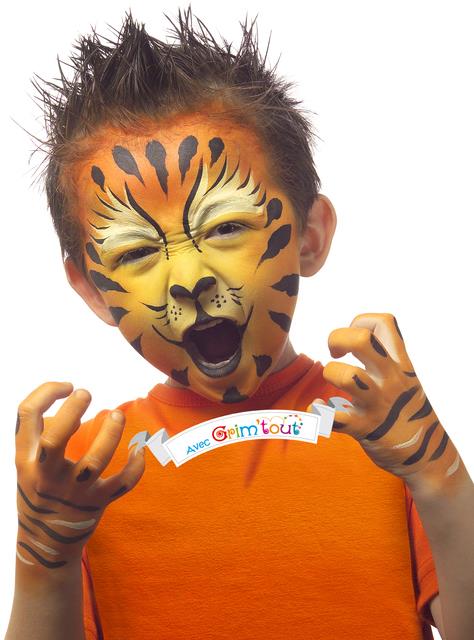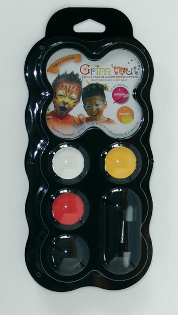 GRIM'TOUT is a quality water-based theatrical makeup specially designed to suit children's delicate skin. Always diluted with water, it is simply applied with a sponge or a brush!