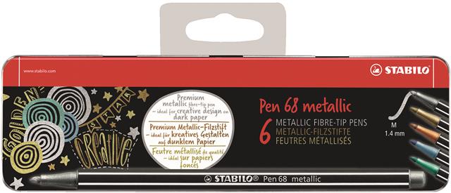 COLORING FELTPENS STABILO PEN 68 METALLIC, METAL BOX 6 PCS