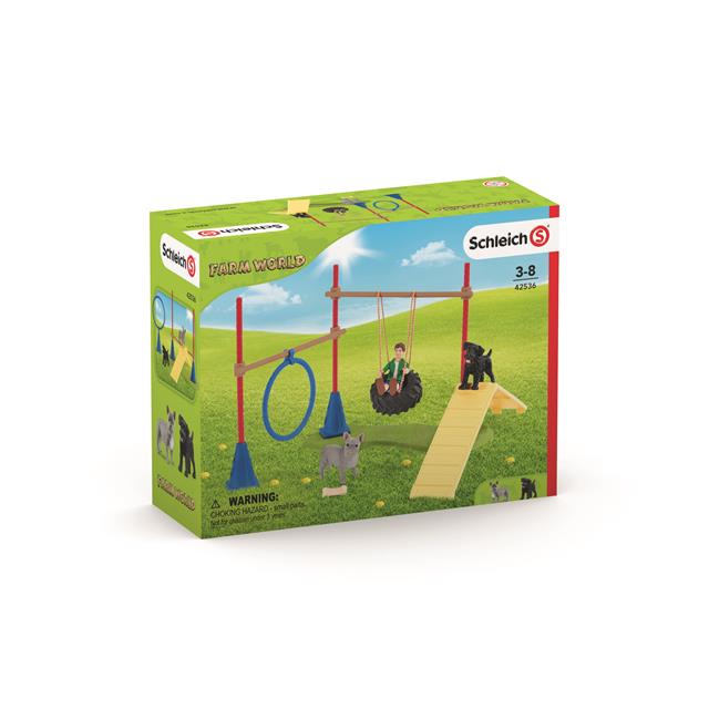 To make sure that his dogs Rosi and Bobby stay fit and can learn cool tricks, FW boy Ben trains them with the new set Puppy Agility Training from Schleich® FARM WORLD! He teaches his bulldog Rosi and miniature schnauzer Bobby how to balance on the seesaw and jump through rings. They improve with every training session. While the dogs share their reward bone, Ben swings as high as he can on his tire swing. It’s so much fun! The set arrangement can be varied and provides limitless playing fun!