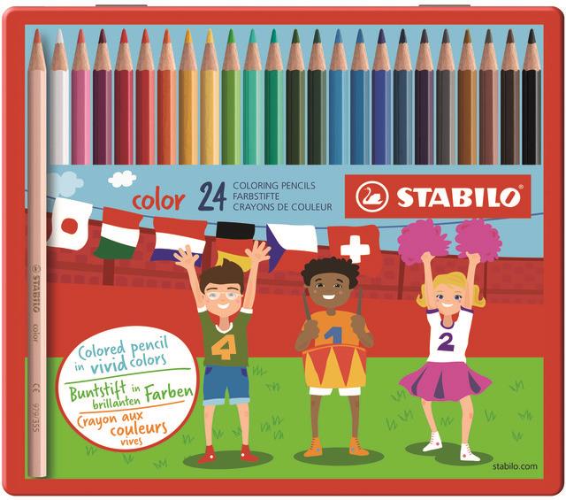 CRAYONS DE COULEUR STABILO COLOR, ÉTUI MÉTAL DE 24 CRAYONS