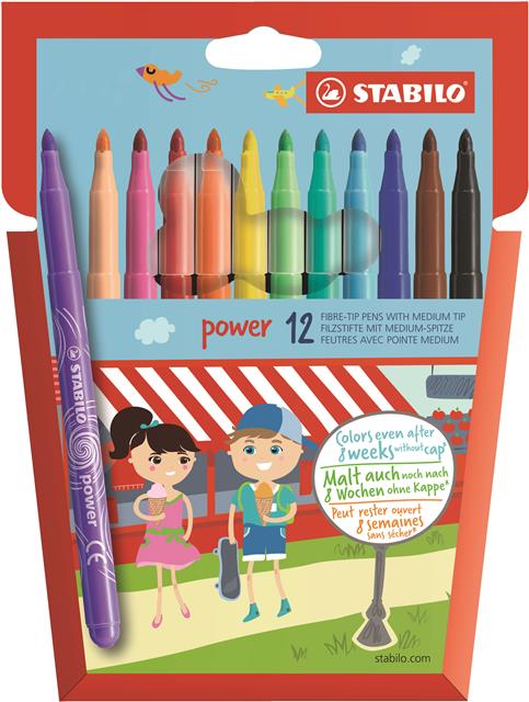 FEUTRES DE COLORIAGE STABILO POWER, ÉTUI CARTON DE 12 FEUTRES