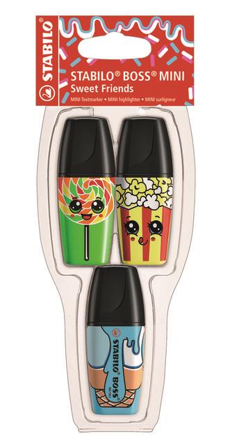 SURLIGNEURS STABILO BOSS MINI SWEET FRIENDS, POCHETTE DE 3 PCS (VERT - JAUNE - BLEU)
